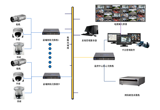 本项目共设计94台网络摄像机,全部采用720P高清网络摄像机。