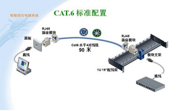 (1)整个综合布线系统采用6类解决方案,设计为分层星型拓扑结构,分为语音网和数据网,均为非屏蔽网。所有产品除在建筑物内的干线及水平线缆外,均应是模块化设计,只要变换跳线即可完成语音、数据从任何一个信息点到中心的连接。